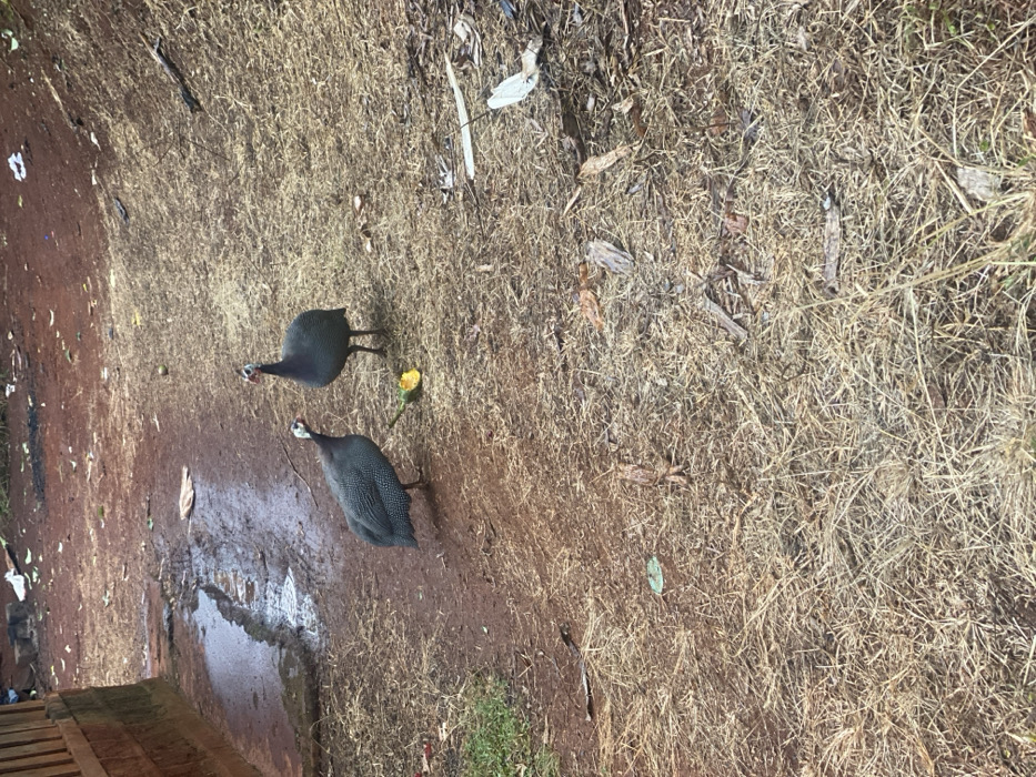 - "Two guinea fowl stand amidst dry grass and dirt" by FM-nhoeR2, licensed under CC BY 4.0