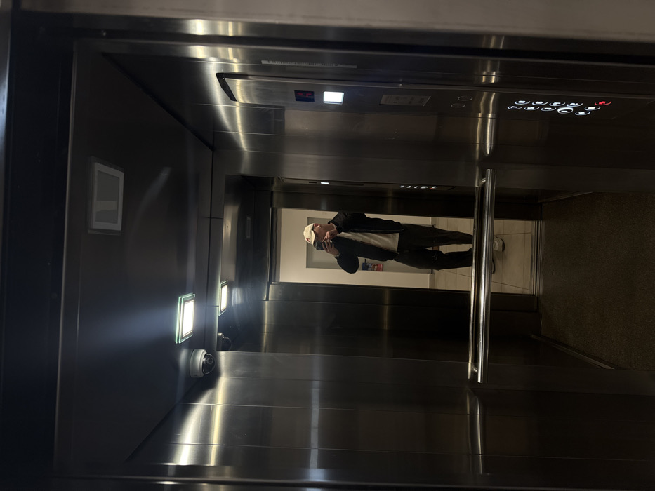 - "The image depicts the interior of a modern elevator with brushed stainless steel walls and a mirrored rear wall" by FM-eEI0c2, licensed under CC BY 4.0