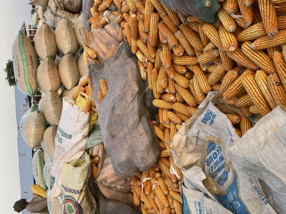 The image captures an outdoor agricultural storage scene in Kwarau, Nigeria