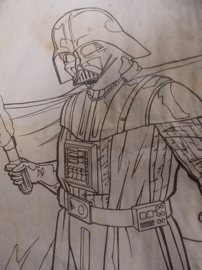 - "The image displays an uncolored line art drawing of the character Darth Vader on a piece of paper" by FM-zNLR92, licensed under CC BY 4.0