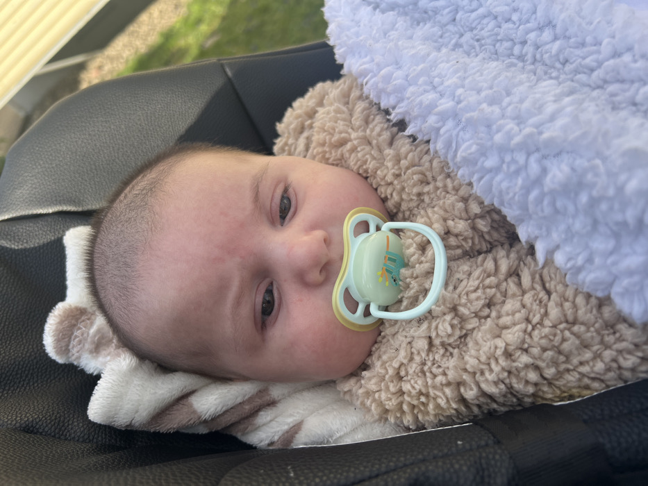 - "An infant is depicted in a close-up, high-angle photograph, situated within a black stroller or car seat" by FM-MXTUt1, licensed under CC BY 4.0