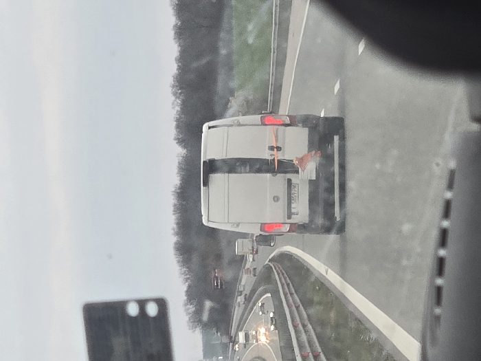 - "The scene depicts the rear of a white panel van traveling on a multi-lane highway under overcast skies" by FM-IYQQn1, licensed under CC BY 4.0