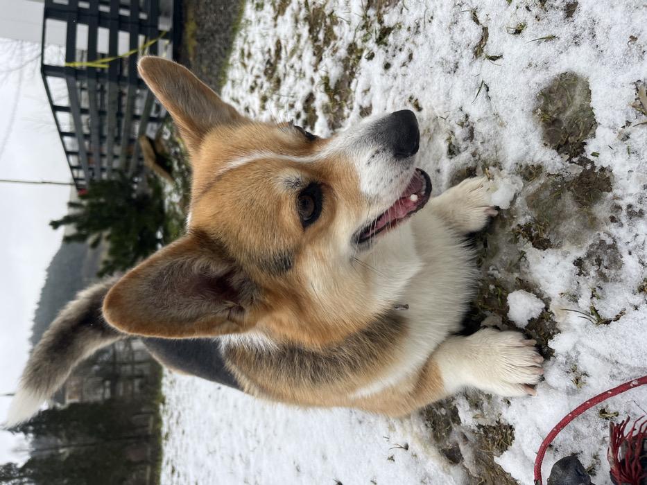 - "An image captured in Becherbach, Germany, depicts a tri-color Pembroke Welsh Corgi positioned in a low, play-bow stance on partially snow-covered ground" by FM-4GKkh1, licensed under CC BY 4.0