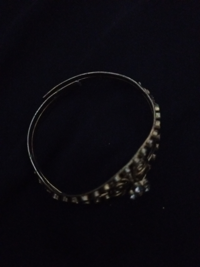 - "A single metallic bangle, silver or light-toned, is depicted against a uniformly dark, featureless background in a close-up, slightly overhead shot" by FM-CuvaI2, licensed under CC BY 4.0