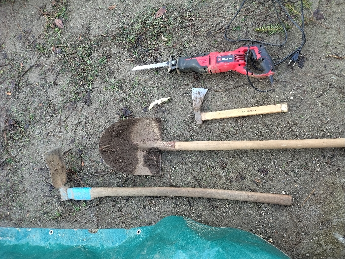 - "An overhead forensic image displays a collection of gardening and construction tools laid on a dirt and sparsely vegetated ground surface in the city of Crauthem, Luxembourg" by FM-M4lpO2, licensed under CC BY 4.0