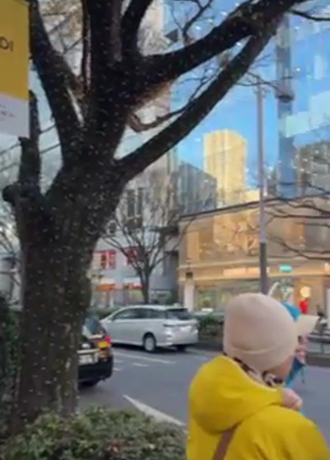 The camera pans across a city street in Japan featuring high-end retail stores such as Fendi and Bulgari