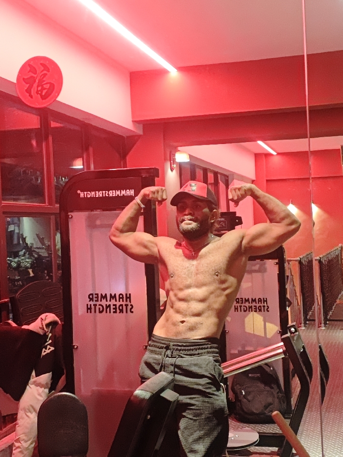 - "An adult male is prominently featured, shirtless and flexing his biceps, within an indoor gym setting in the Chongqing High-tech Zone, China" by FM-DpvWU2, licensed under CC BY 4.0