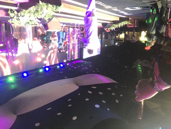 The image displays an indoor live event in a large venue located in Ado, Nigeria