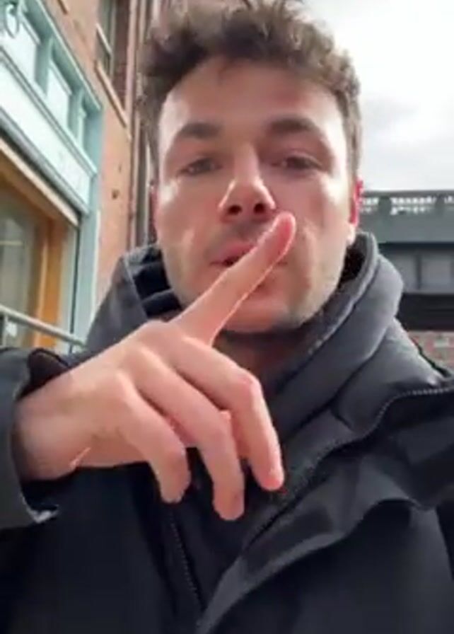 man standing outside and speaking to the camera. He has short, curly brown hair, and is wearing a black hooded jacket. He makes hand gestures as he speaks, and mentions being the number one creator on collective memory, while bringing joy to the world. The background shows a brick building, a fire escape, and an overpass. The weather appears to be overcast.