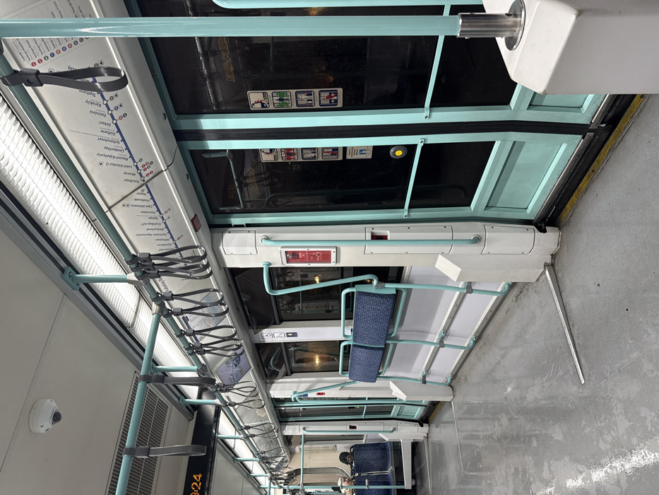 - "The inside of a subway car features rows of blue-cushioned seats with silver handrails" by FM-GGDR63, licensed under CC BY 4.0