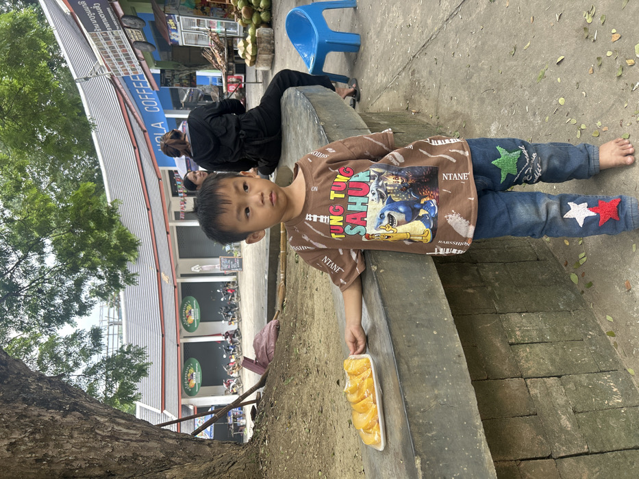 - "A young Asian boy stands barefoot in a commercial area of Thapene, Laos, near a large tree and a low concrete wall" by FM-NScrU2, licensed under CC BY 4.0