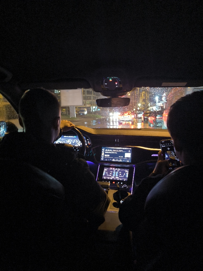 - "The image depicts the interior of a vehicle at night, looking forward through the windshield onto a wet city street in Varna, Bulgaria" by FM-QsyOh2, licensed under CC BY 4.0