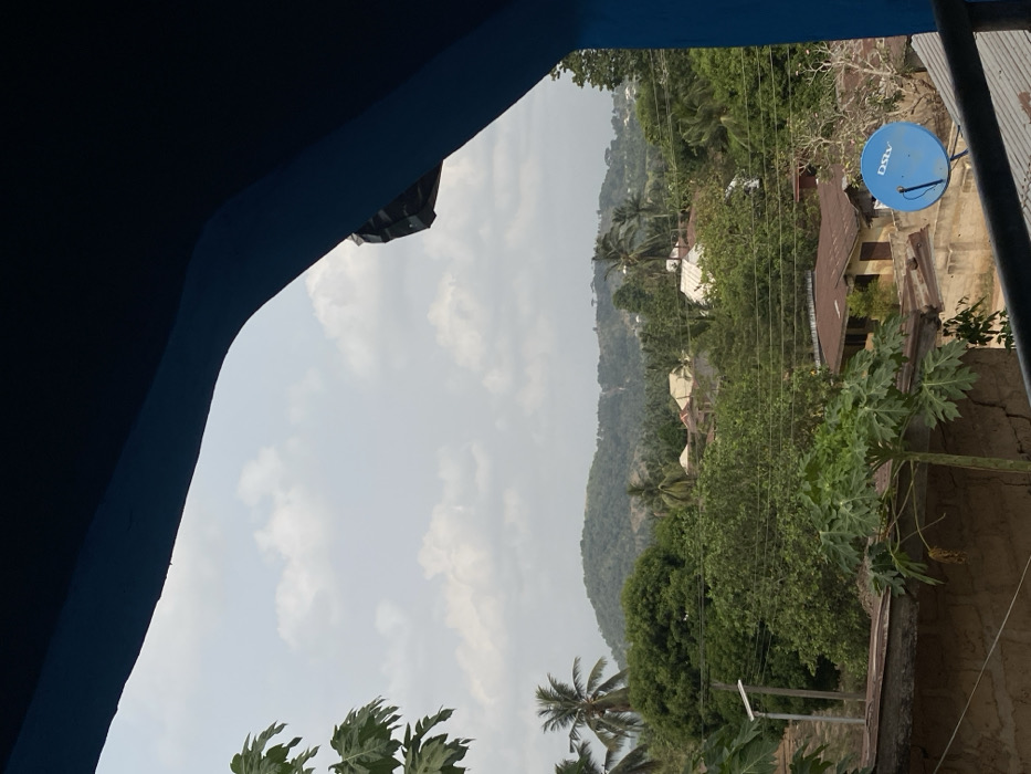 - "The image presents a wide-angle outdoor scene overlooking a verdant, semi-urban landscape in Nguzu Edda, Nigeria, viewed from beneath a dark blue architectural overhang and partially framed by a dark blue railing or support structure" by FM-6XMFv1, licensed under CC BY 4.0