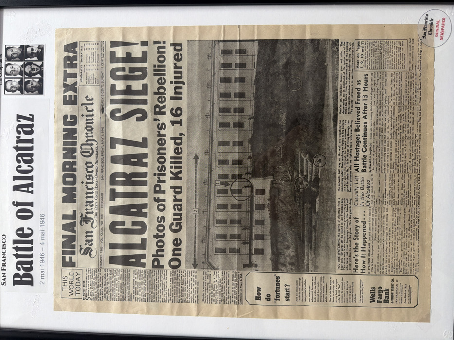 - "The image displays a framed, aged San Francisco Chronicle newspaper dated Friday, May 3, 1946, positioned indoors in Pétange, Luxembourg" by FM-uP6nB3, licensed under CC BY 4.0