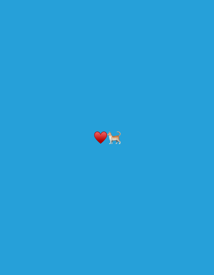 The image displays a plain blue background. Centered horizontally are two digital emoji subjects: a red heart icon positioned on the left, and a tan-colored domestic cat emoji positioned on the right. The cat emoji features subtle stripe detailing and is depicted in a four-legged standing or walking posture with its tail slightly raised. No human figures, real-world objects, physical actions, or interactions are present. The environment is a uniform digital color field. This graphic does not depict a physical location, therefore no scene details from Sarouja Municipality, Syria, are observed.