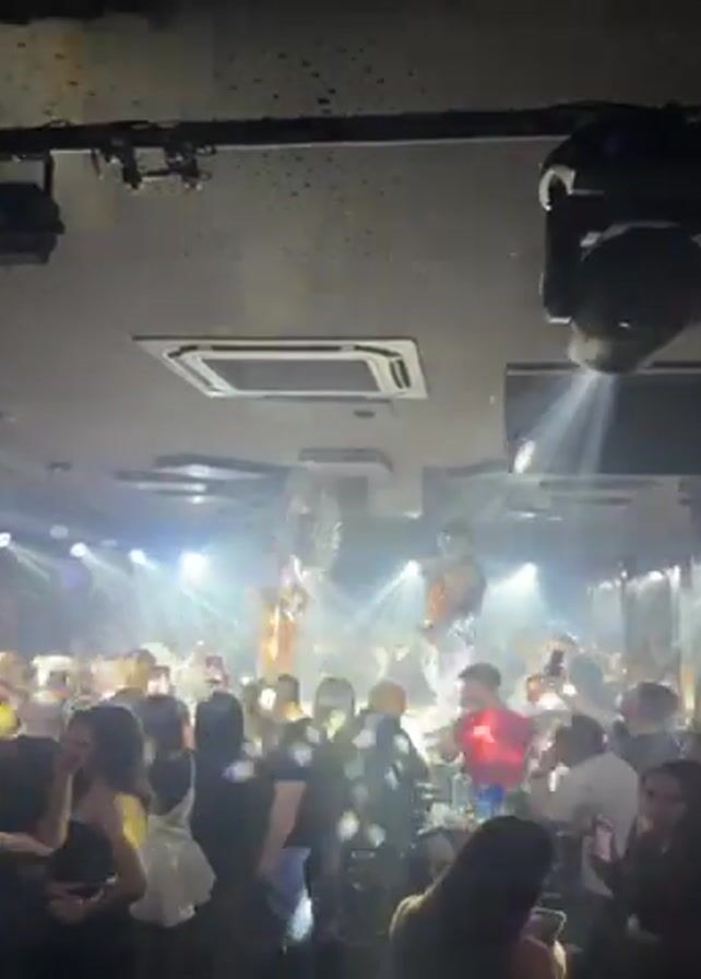 The video captures a lively nightclub scene