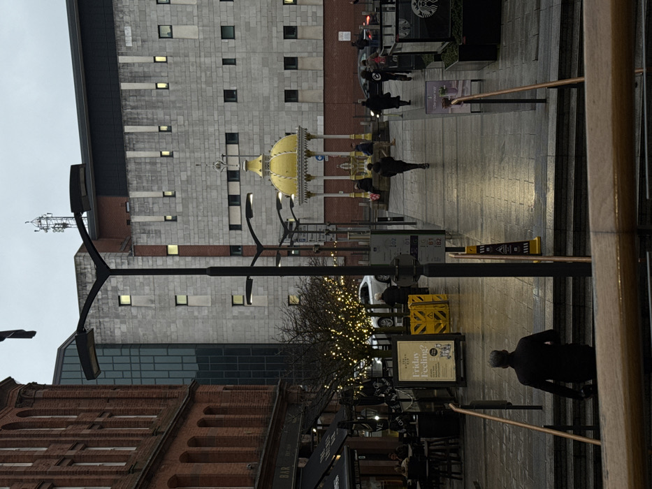 - "The image depicts an urban street scene in Custom House Square, Belfast, United Kingdom, under an overcast sky with reflective, wet pavement" by FM-Gswv13, licensed under CC BY 4.0