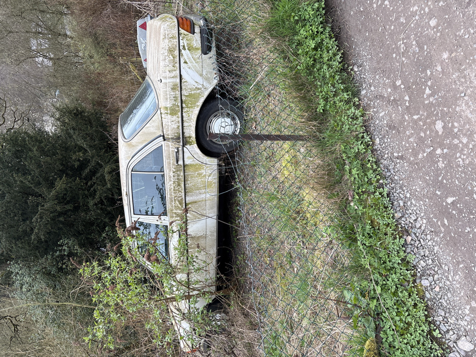 - "The image displays an abandoned, heavily weathered light-colored four-door sedan, identified as a Mercedes-Benz W123-series, located in Snailbeach, United Kingdom" by FM-RPcgE2, licensed under CC BY 4.0
