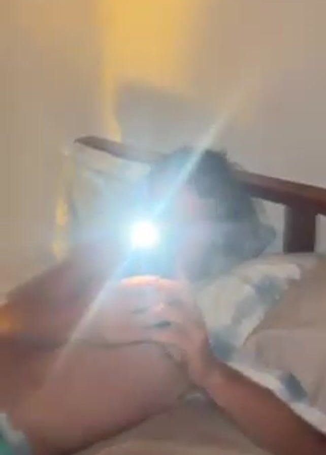 - "A shirtless person is laying in bed and shining a bright light at the camera" by FM-A0fME3, licensed under CC BY 4.0