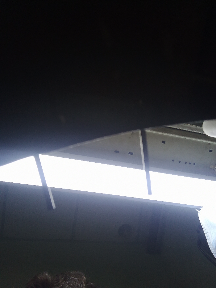 - "The image depicts a bright white fluorescent light fixture mounted to the ceiling of an indoor space" by FM-zMGq42, licensed under CC BY 4.0