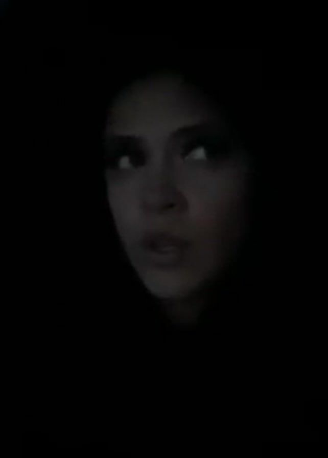 person's face in dim light. The person has dark hair, dark eyes, and visible eyelashes. The face is pale and the lips are slightly parted. The background is dark and indistinct. The person's expression is neutral or slightly downward. The video is close-up and the focus is on the person's face.