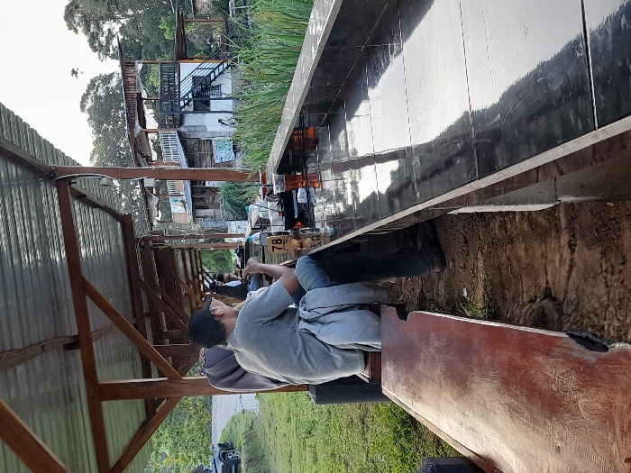 - "An outdoor dining or seating area in Penanggungan, Indonesia, is captured under a corrugated metal roof supported by wooden beams" by FM-8CAHW2, licensed under CC BY 4.0
