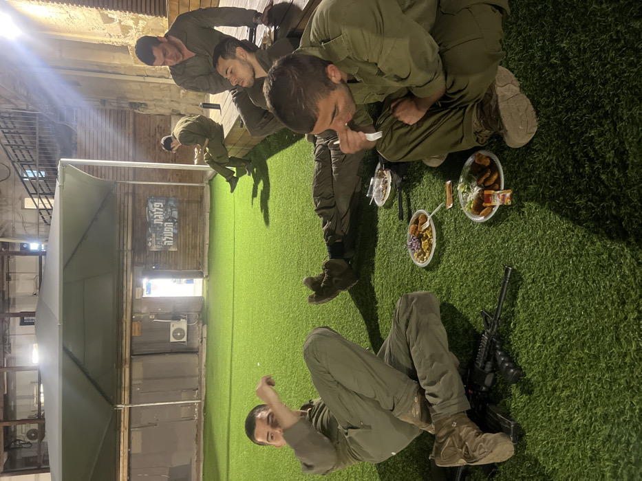 - "four young men in military uniforms, sitting and eating on an artificial grass patch in an outdoor area in Be'er Sheva, Israel" by FM-JWrQ13, licensed under CC BY 4.0