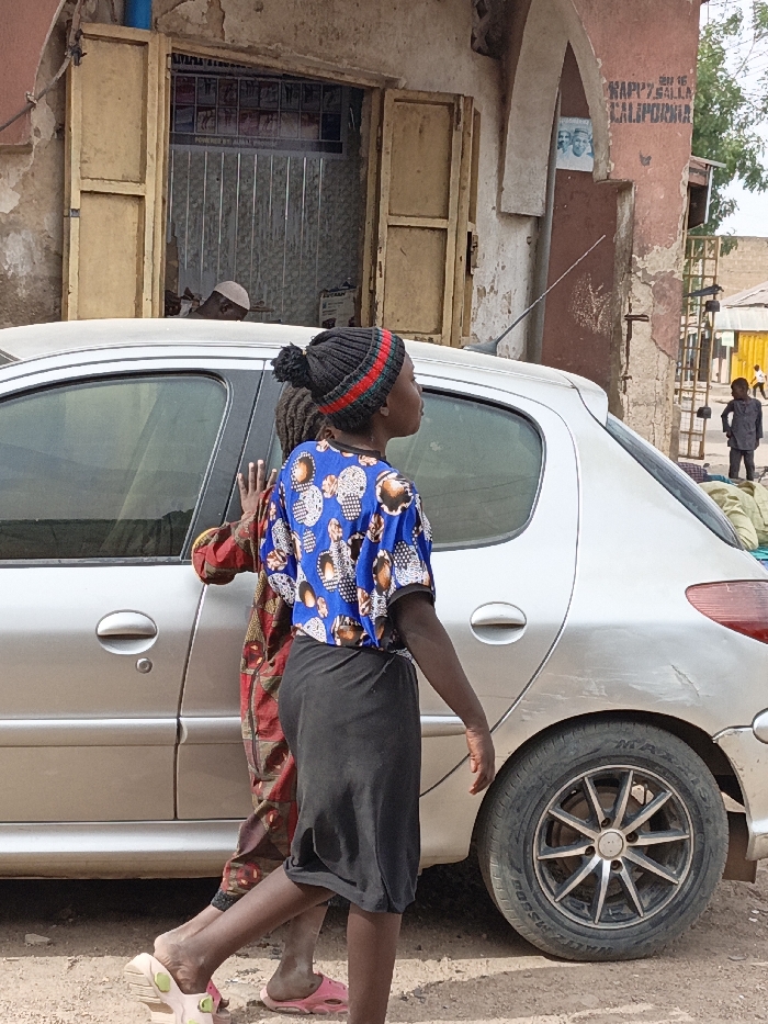 - "A street scene captured in Gwagwarwa, Nigeria, depicts multiple individuals and structures around a parked silver hatchback car" by FM-cSMTg1, licensed under CC BY 4.0