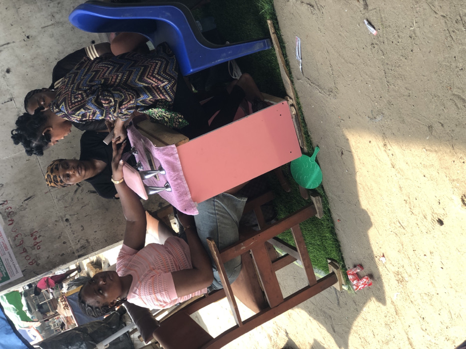 - "The scene depicts an outdoor nail service in Aiyetoto-Asogun, Nigeria, set against a concrete wall and a market background" by FM-Ad55i2, licensed under CC BY 4.0