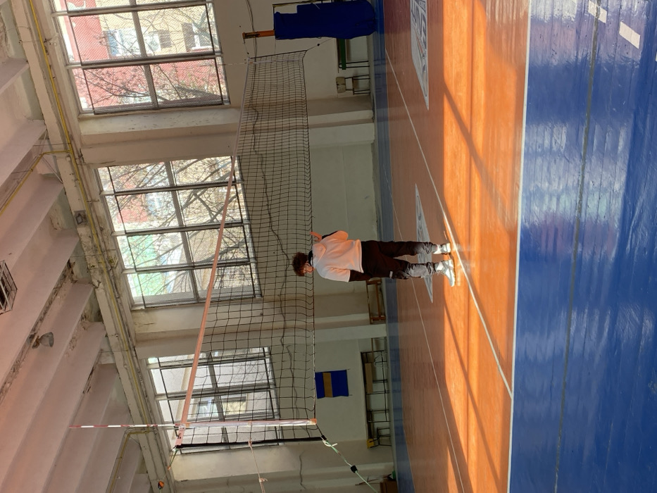 The image depicts the interior of a sports gymnasium in Silistra, Bulgaria