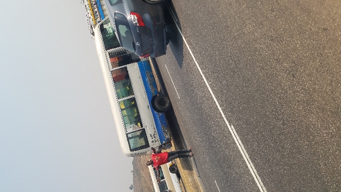 The image captures an outdoor scene on a paved road in Kugbo, Nigeria, under a clear sky