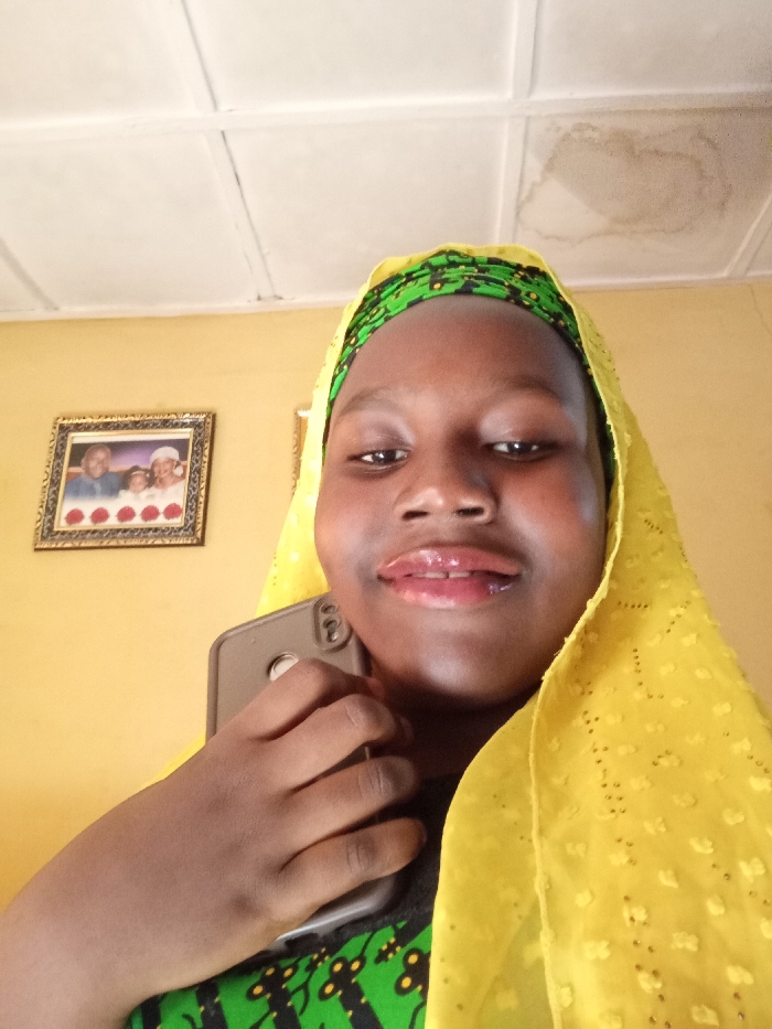 An individual, identifiable as female, is depicted in a close-up indoor selfie, located in Narayi, Nigeria