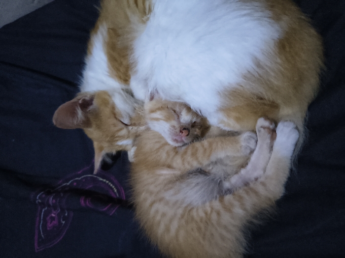 - "In An Khe Ward, Vietnam, two felines are depicted sleeping on a dark gray or black fabric surface" by FM-9chN03, licensed under CC BY 4.0