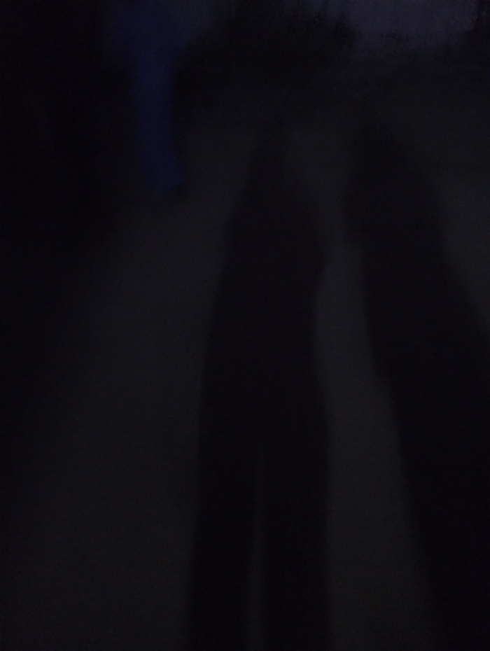 This image depicts an extremely underexposed or poorly lit environment located in Dabawa, Nigeria. The scene is dominated by shades of black and dark grey, with minimal discernible detail. In the upper left portion of the frame, a diffuse, indistinct area of dark blue coloration is present. Towards the center and right, multiple faint, vertical, somewhat parallel linear forms are visible as slightly lighter dark grey bands against the darker background, lacking sharp definition or identifiable structure. No specific individuals, objects with clear outlines, actions, or interactions can be identified within the frame due to the severe lack of illumination. The environment appears static.