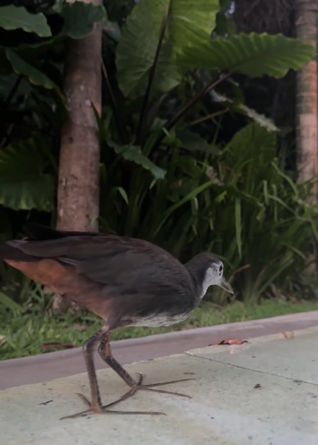 white-breasted waterhen foraging on a concrete surface
