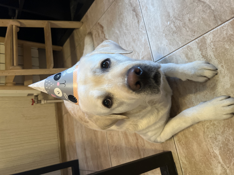 - "A light-colored Labrador Retriever is depicted lying on a tiled floor, facing directly towards the camera, within what appears to be a domestic residence in Mytishchi, Russia" by FM-Vgo2F2, licensed under CC BY 4.0