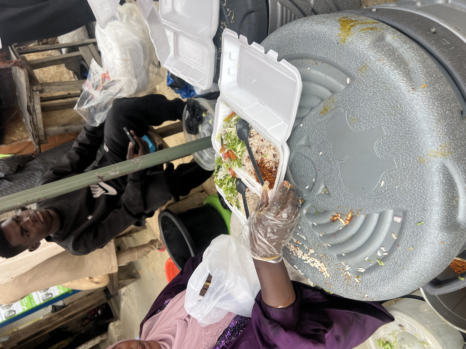 The image depicts an outdoor food vending scene within Tarauni, Nigeria