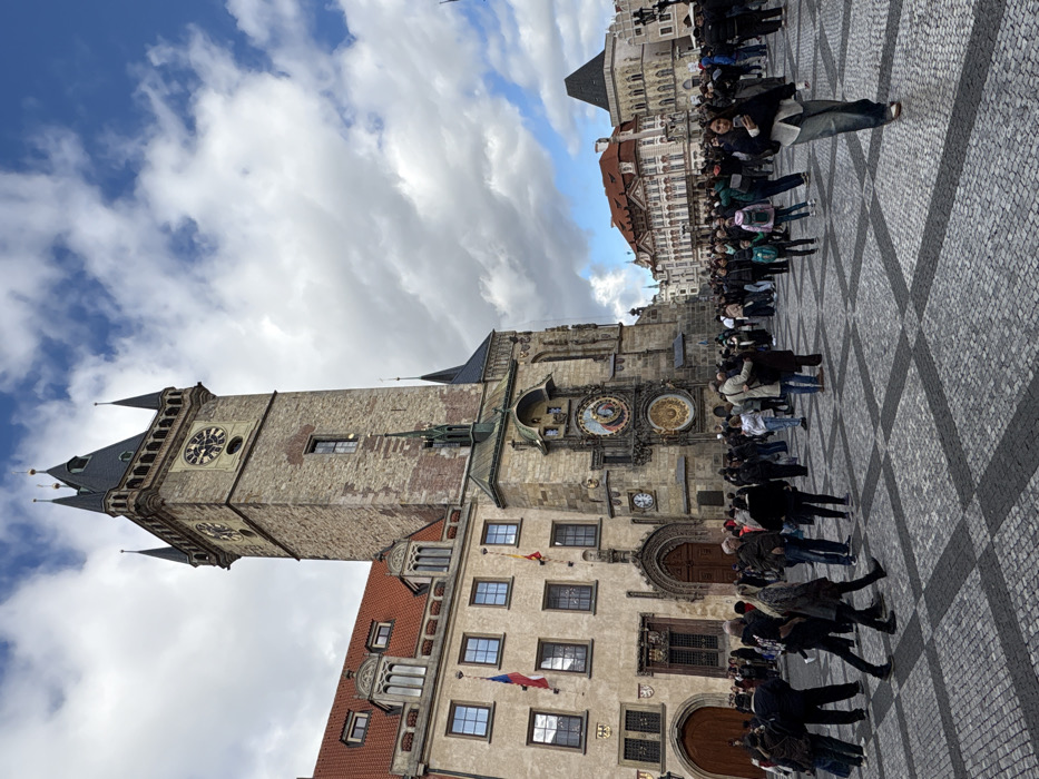 - "An elevated viewpoint captures the Old Town Hall and Astronomical Clock in Old Town Square, Prague, Czechia, under a partly cloudy sky" by FM-3AO163, licensed under CC BY 4.0