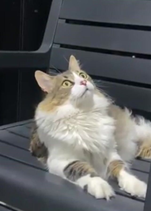 - "A long-haired brown, white, and gray tabby cat lies on a black outdoor chair" by FM-FOdGg1, licensed under CC BY 4.0