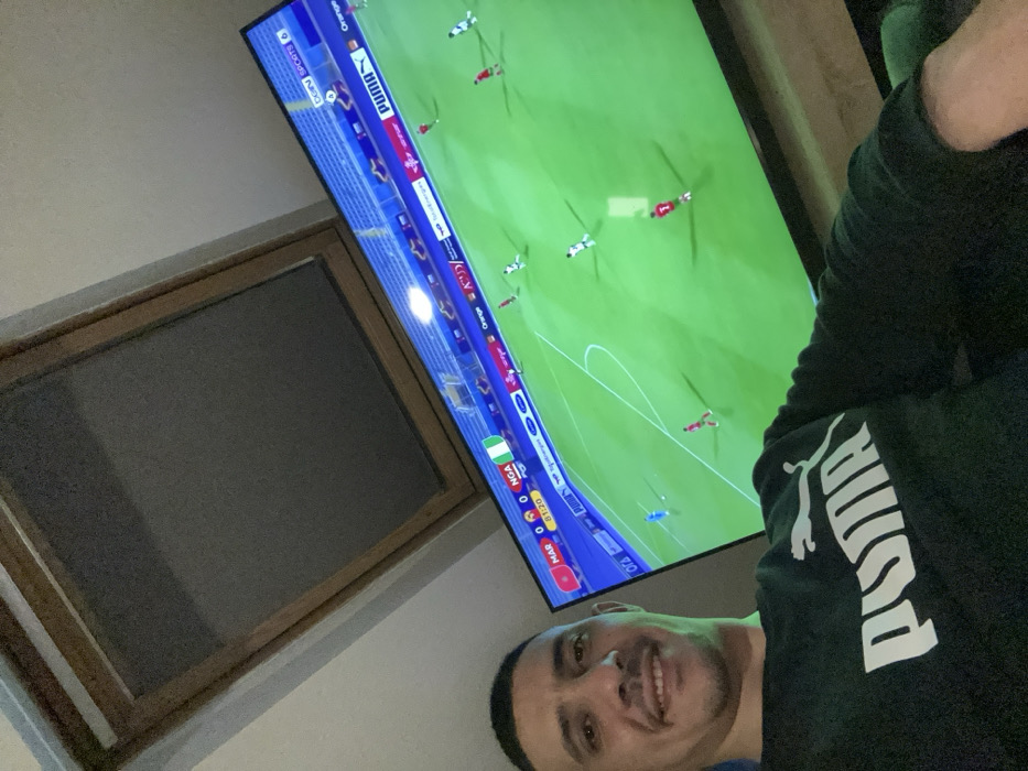 - "A man in a black Puma sweatshirt is watching a soccer game on TV" by FM-LY5HE3, licensed under CC BY 4.0
