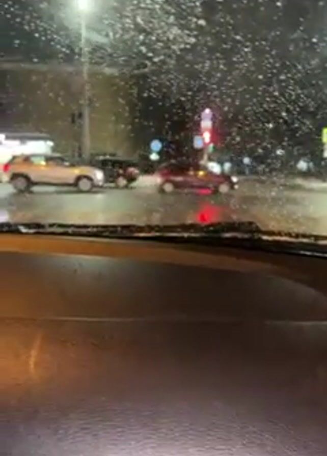 view from inside a car at night during a snowstorm