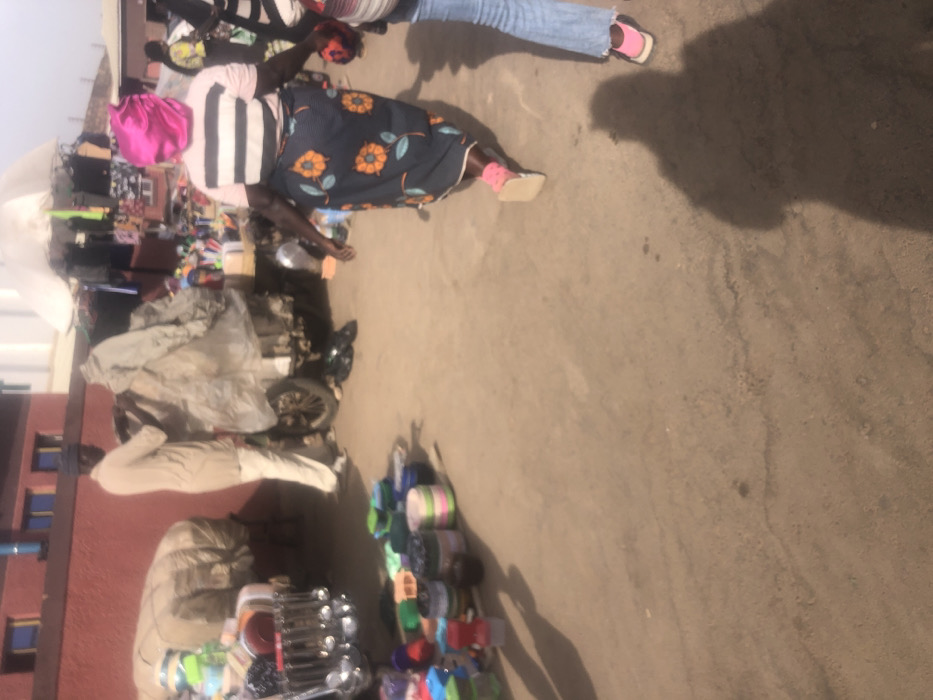This image depicts a bustling outdoor market scene in Bukuru, Nigeria