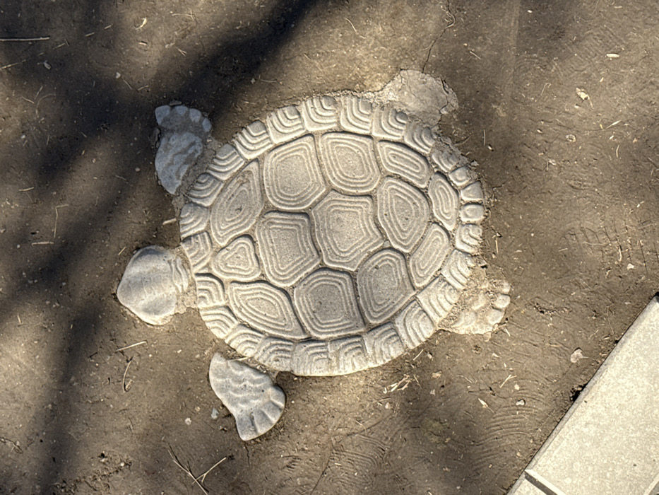 - "An overhead photograph depicts a turtle-shaped concrete stepping stone embedded in dark brown soil in Leskovets, Bulgaria" by FM-6fkMy1, licensed under CC BY 4.0