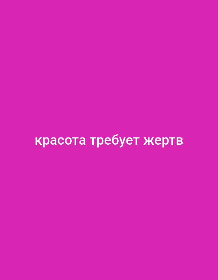 The image displays white Cyrillic text centered on a solid magenta background. The text reads "красота требует жертв," which translates to "beauty requires sacrifice." The image itself does not depict any physical location, people, subjects, objects, actions, or interactions within the city of Красный Маяк, Russia, or any other geographical area. It is a graphic presentation of text on a plain color.