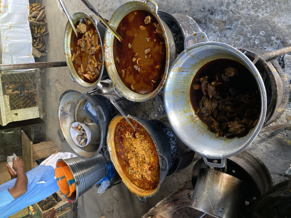 - "Six large metal pots sit atop charcoal stoves, containing various stews and dishes" by FM-l4KvG3, licensed under CC BY 4.0