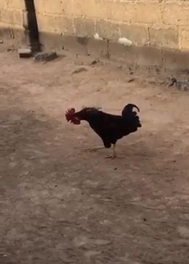 - "black rooster standing on the dirt ground in a yard" by FM-KIwYJ2, licensed under CC BY 4.0
