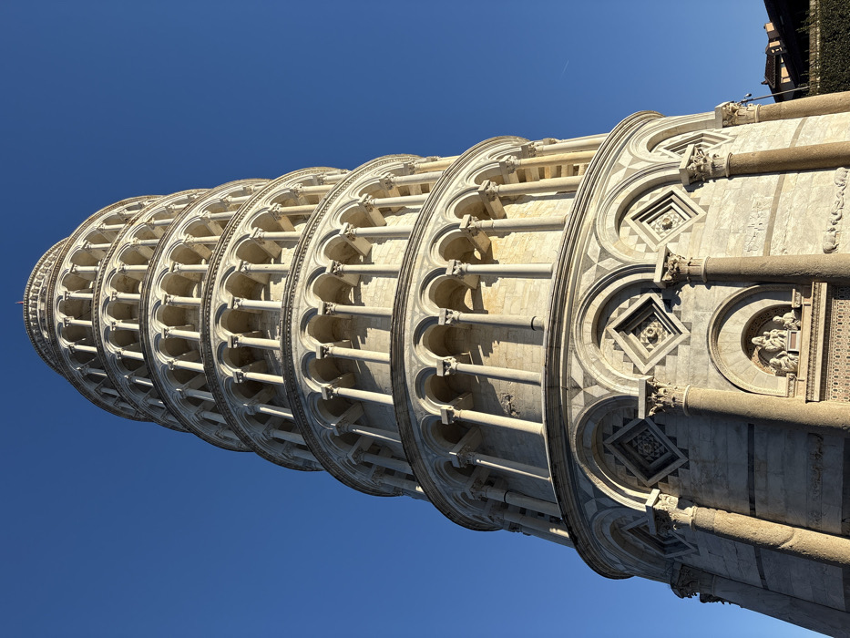 - "The image displays a low-angle, vertical view of the Leaning Tower of Pisa, a white marble campanile located in the Piazza dei Miracoli, Pisa, Italy" by FM-E1hwL2, licensed under CC BY 4.0