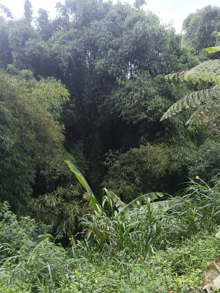 This image displays a dense, verdant natural landscape located in Bagochen Boolingpang Ueling, Bhutan