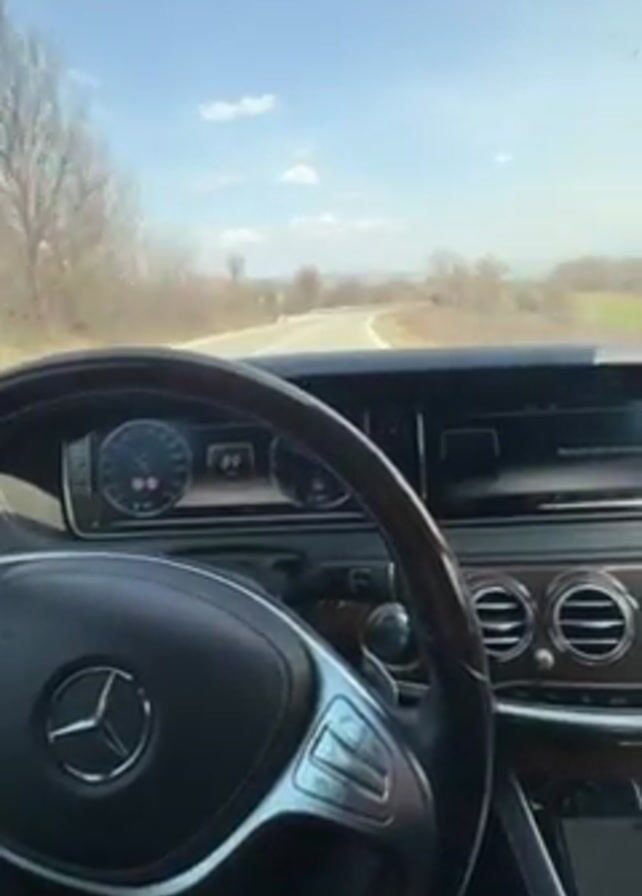 first-person perspective from inside a Mercedes-Benz car