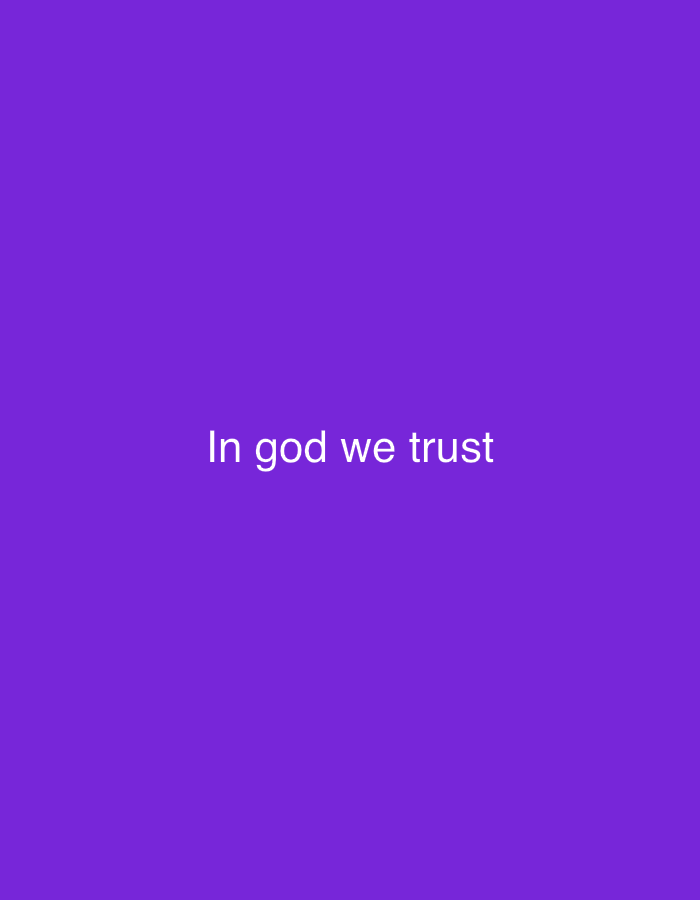 A solid purple background fills the frame. Centered horizontally and vertically, the phrase "In god we trust" is displayed in white, sans-serif font. The text is clear and legible, contrasting well against the purple backdrop. The overall composition is simple and direct.